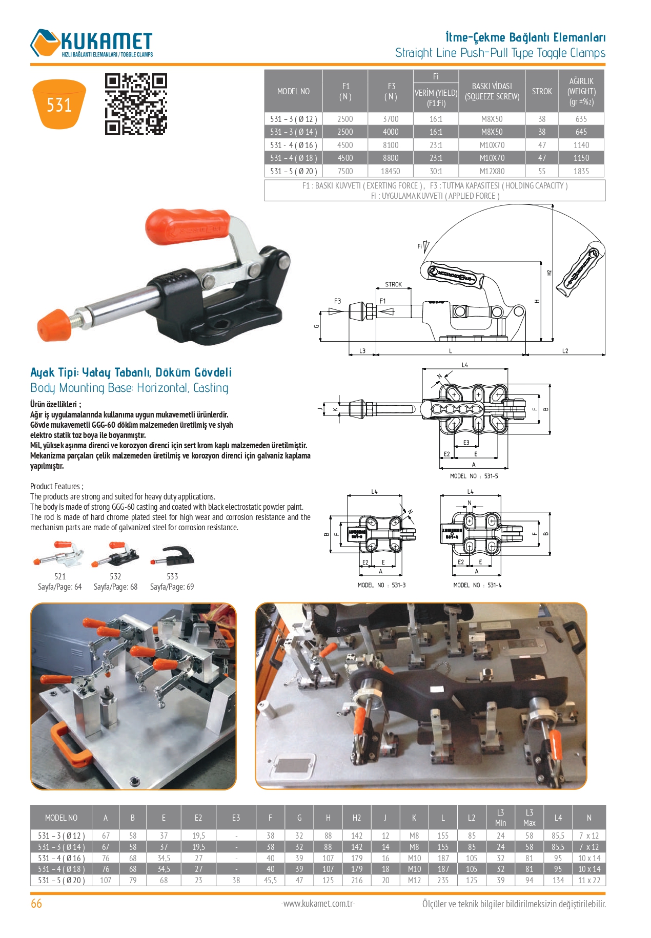 Kukamet 531-3-Q12, 531-3 serisi yataklı döküm taban ürünüdür. Ø12 mil çapı, teknik ölçüler ve seri içi karşılaştırma bilgileri.