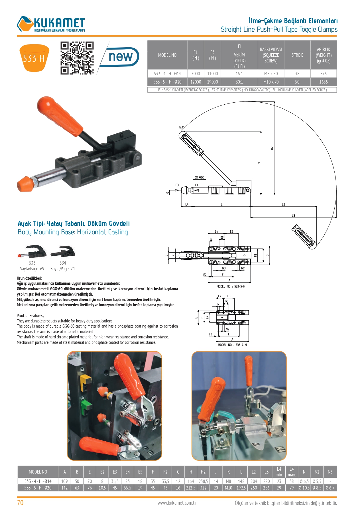 • Ağır iş uygulamalarında kullanıma uygun mukavemetli ürünlerdir.